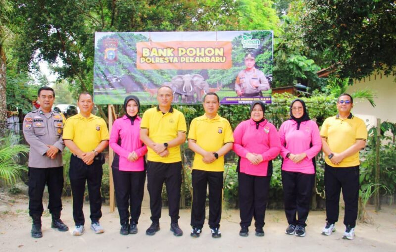 Kapolresta Pekanbaru melakukan pengecekan sekaligus perawatan tanaman yang ada di Bank Pohon bersama jajaran.