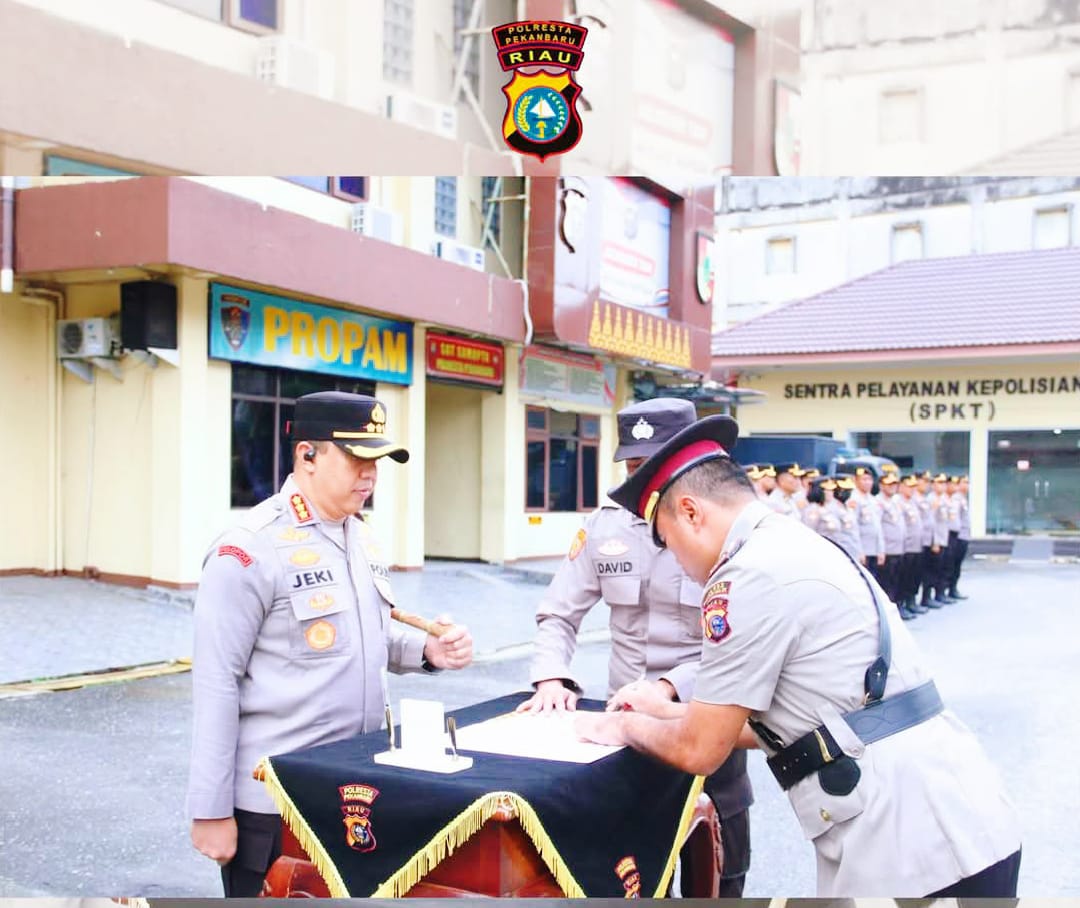Pekanbaru, baranewsriau.com – Kapolresta Pekanbaru, Kombes Pol. Jeki Rahmat Mustika, S.I.K., M.H., memimpin langsung upacara Serah Terima Jabatan (Sertijab) Kapolsek Payung Sekaki Pekanbaru. Senin (12/01/2026).