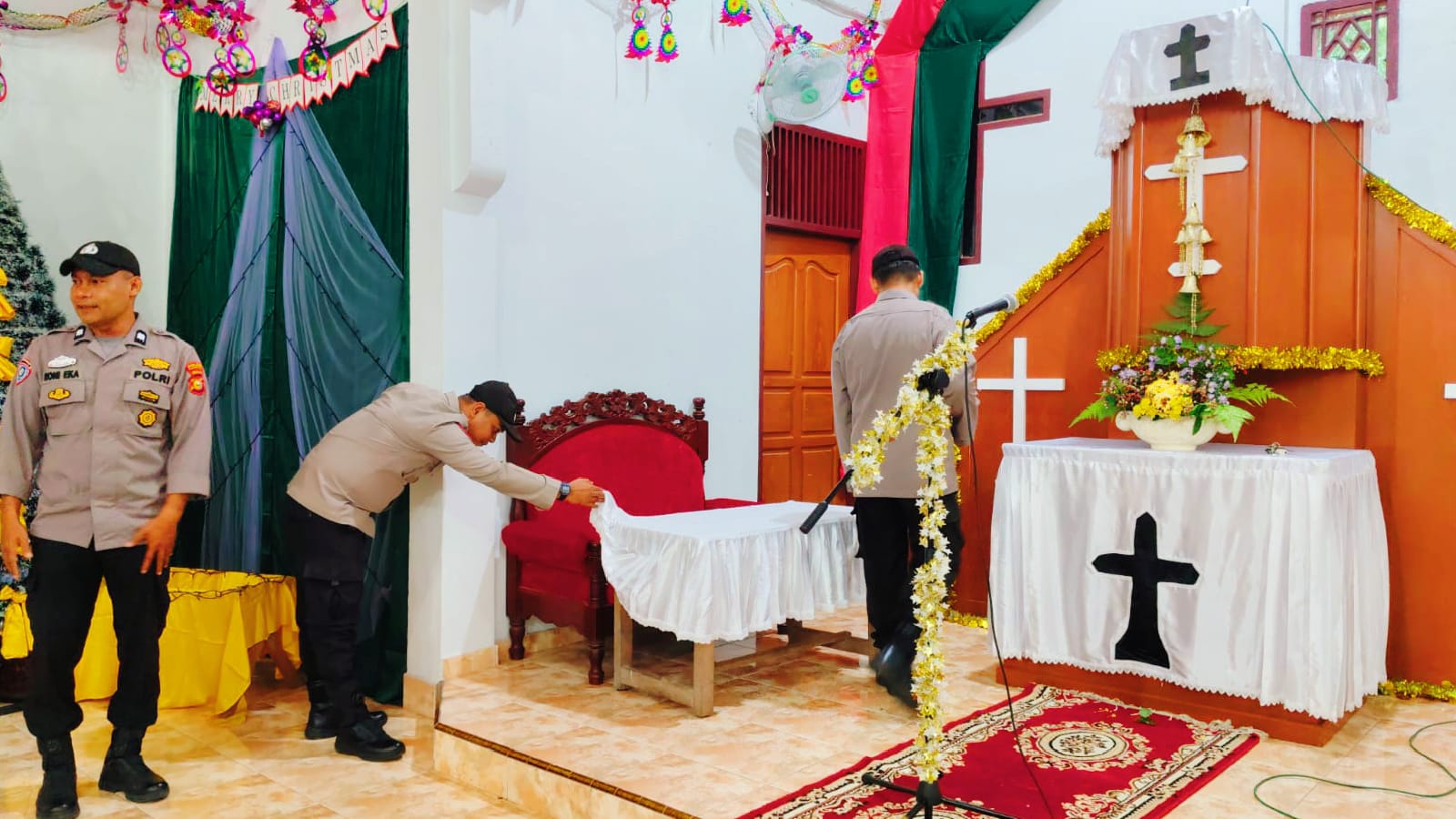 “Kami hadir di sini untuk memastikan bahwa umat Kristiani dapat melaksanakan ibadah Natal dengan aman dan nyaman,” ujar Kapolsek Kampar.