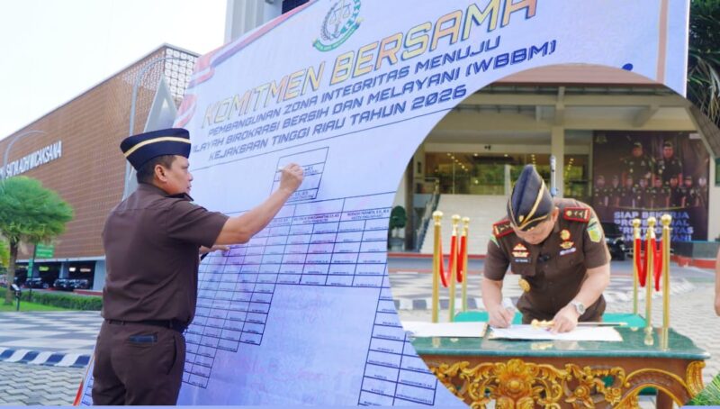 Pekanbaru, baranewsriau com – Kejaksaan Tinggi Riau menggelar Apel dan Penandatanganan Pakta Integritas dalam rangka pembangunan zona integritas menuju Wilayah Birokrasi Bersih dan Melayani (WBBM) Tahun 2026. Acara ini dipimpin langsung oleh Kepala Kejaksaan Tinggi Riau, Dr. Sutikno, S.H., M.H. Rabu (4/02/2026).