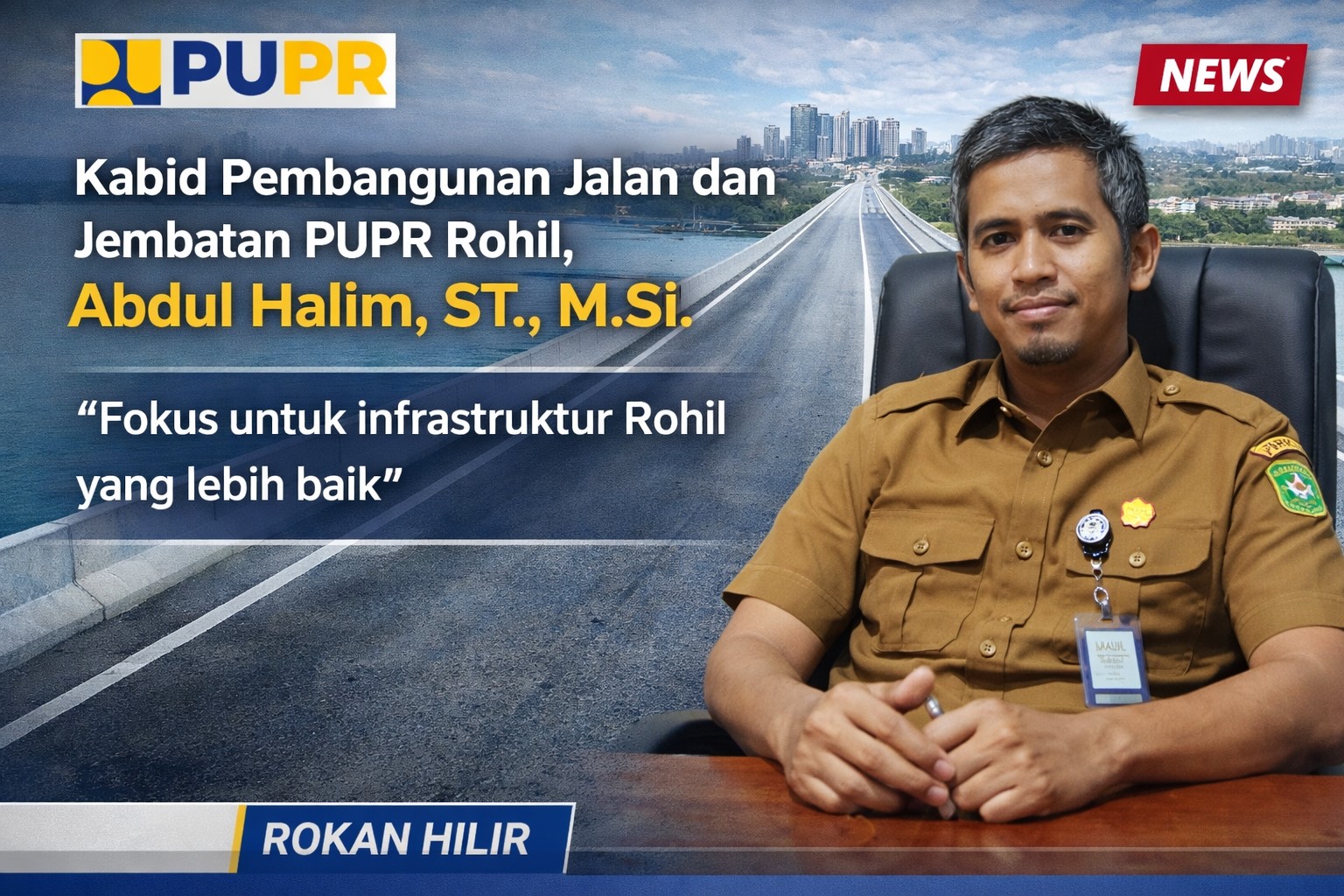 Pada Bidang Pembangunan Jalan dan Jembatan, Abdul Halim, ST., M.Si., menegaskan komitmennya dalam meningkatkan konektivitas antar wilayah.
