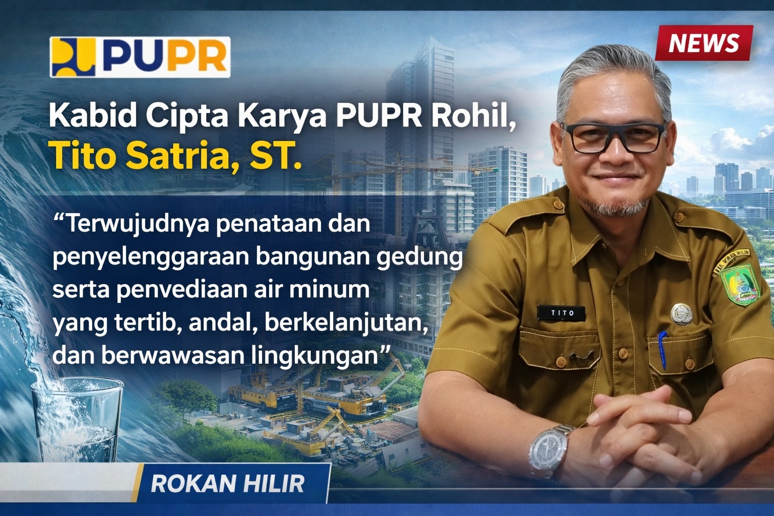 Kabid Cipta Karya, Tito Satria, ST., berperan dalam penataan bangunan gedung pemerintah dan sistem penyediaan air minum.