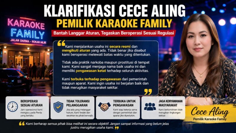 PANIPAHAN – Menanggapi pemberitaan yang beredar terkait dugaan pelanggaran operasional dan aktivitas negatif di tempat hiburan malam (THM) karaoke miliknya, Cece Aling selaku pemilik Karaoke Family di Jalan Darma, Kecamatan Pasir Limau Kapas, memberikan klarifikasi tegas.