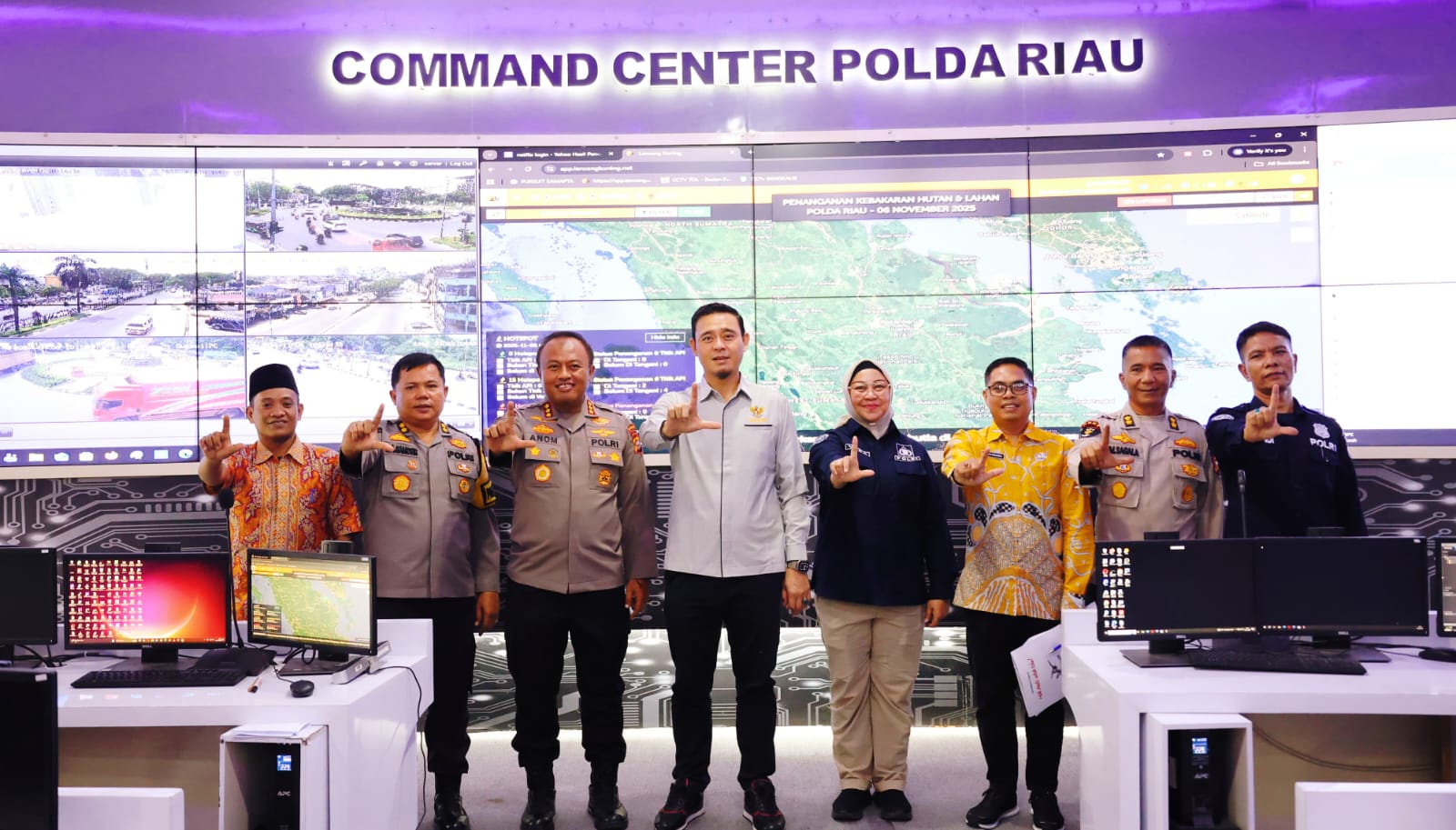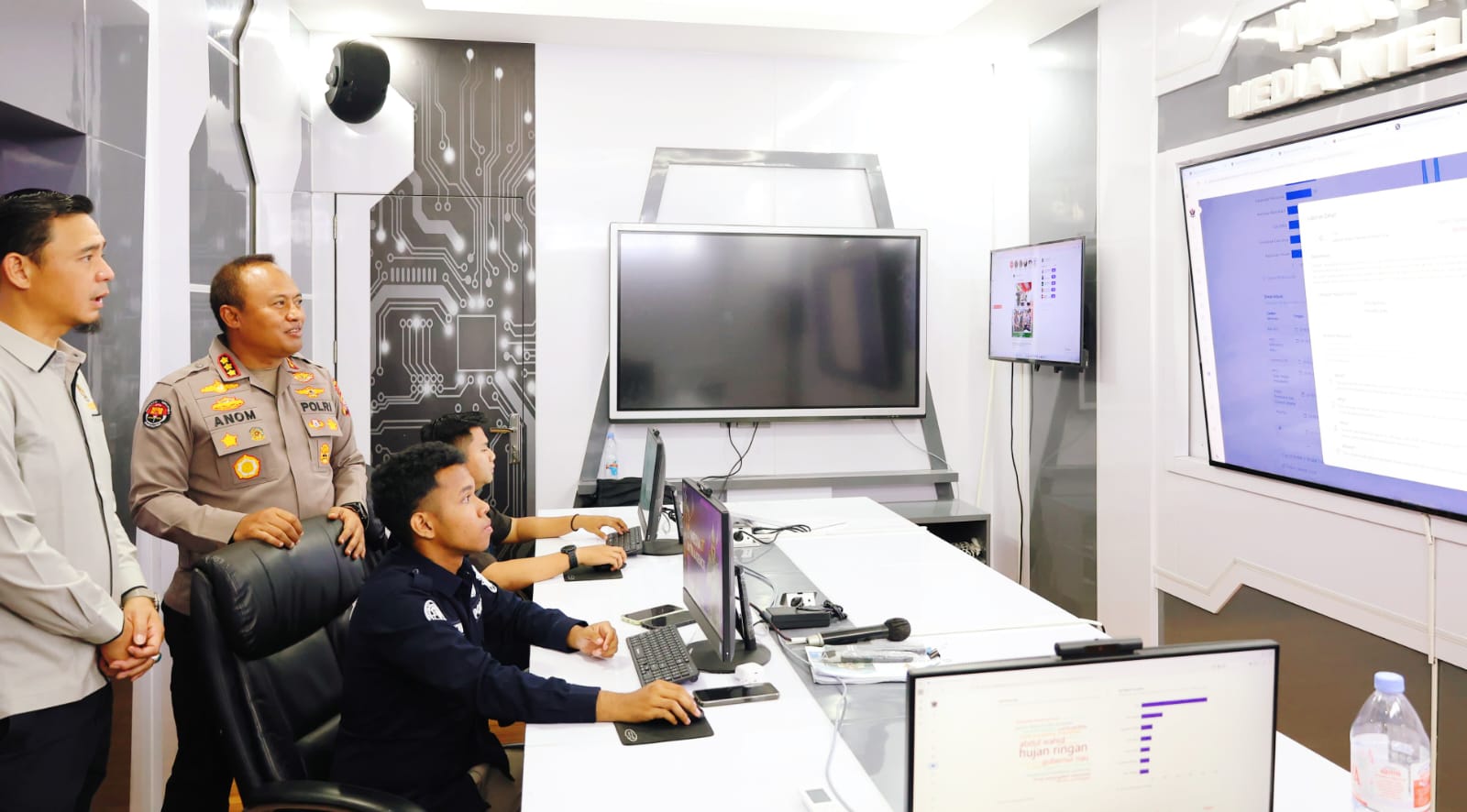 Pada kesempatan itu, Tatang juga sempat melihat-lihat ‘War Room Center’ yang merupakan bagian dari program RADAR (Riau Damai Anti Cybercrime), yang mana di sana, Polda Riau menyediakan akses pelaporan cepat bagi masyarakat yang membutuhkan bantuan polisi segera.