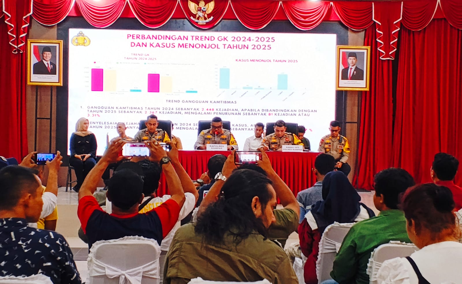 Dalam paparannya, AKBP Boby menyebutkan perbandingan Kamtibmas tahun 2024 sebanyak 2448 kejadian, apabila di bandingkan dengan tahun 2025 sebanyak 2367 kejadian.