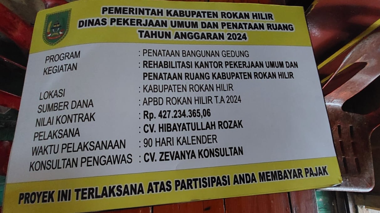 Pada saat yang sama, yang bersangkutan juga disebut sebagai pihak pelaksana pembangunan musholla di lingkungan Kantor Dinas Pekerjaan Umum dan Penataan Ruang (PUPR) Rohil, proyek yang belakangan menjadi polemik.