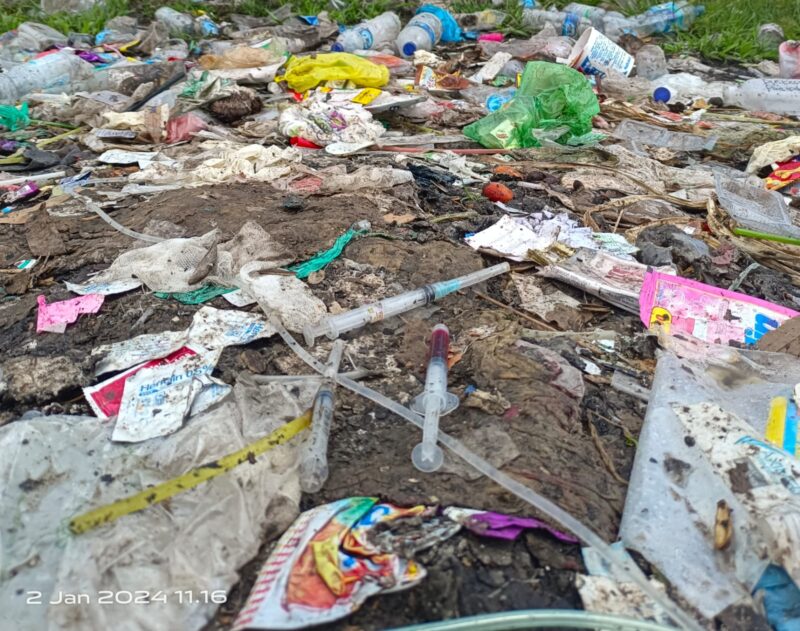 “itu pasien yang buang dan kelalaian dari cs kami dan sebenarnya kami sudah ada MoU dengan perusahaan yang bersertifikat dibagan batu untuk menampung limbah medis kami sebab terakhir kami kirim menggunakan ambulans pertengahan tahun 2023 yang lalu,” Ujarnya Selasa (2/1/2024)
