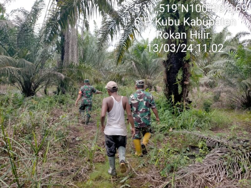 Mengantisifasi terjadinya kebakaran lahan maupun hutan di wilayah Koramil 04/Kubu Kodim 0321 Rohil saat memasuli musim panas (Kemarau),Personil Babinsa bersama warga melaksanakan kegiatan Patroli.