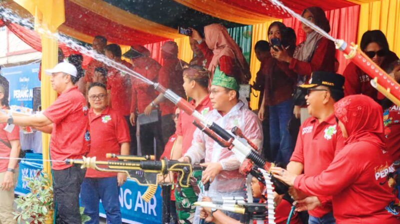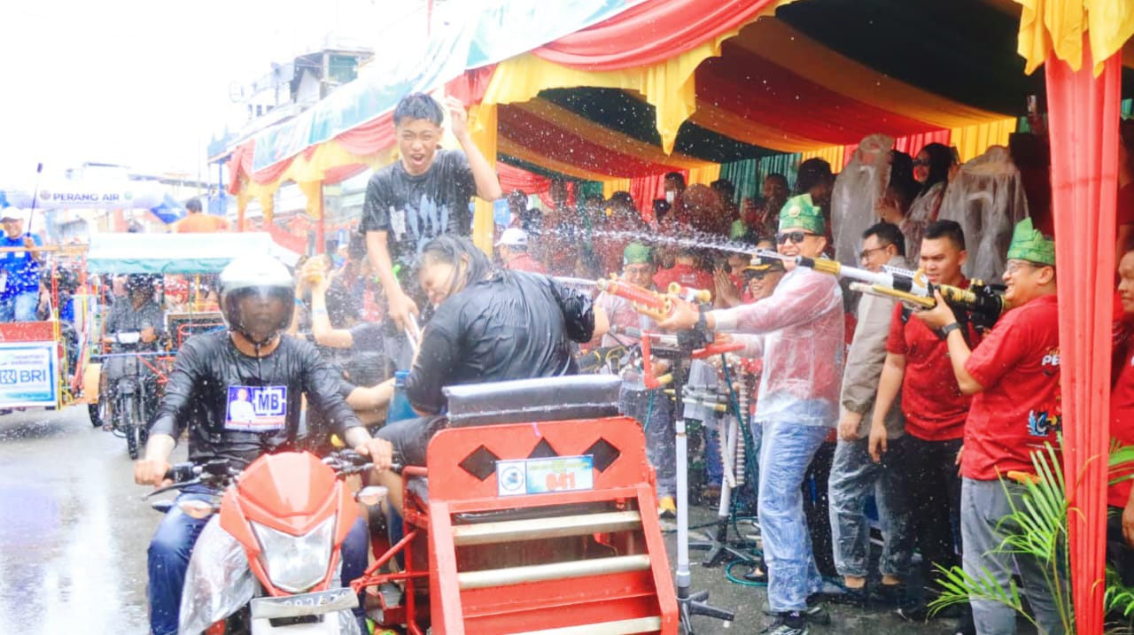 Peserta saling ‘serang’ dengan air yang dimasukkan ke dalam ember ataupun menggunakan pistol air. Kapolda Riau Irjen Pol Herry Heryawan dan Wakapolda Brigjen Hengki Haryadi ikut hadir memeriahkan Cian Cui.