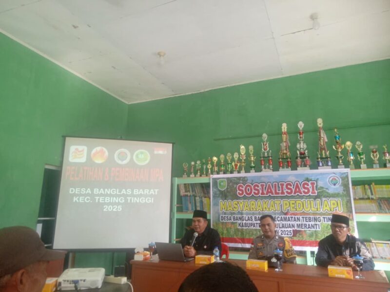 Selatpanjang-Riau, baranewsriau.com – Banglas Barat, Kepulauan Meranti, Masyarakat Peduli Api (MPA) Banglas Barat menggelar pertemuan penting di Kantor Kepala Desa Banglas Barat. Pertemuan ini bertujuan untuk meningkatkan pemahaman dan kesiapsiagaan anggota MPA dalam menghadapi potensi kebakaran lahan dan pemukiman. Rabu (10/9/2025).