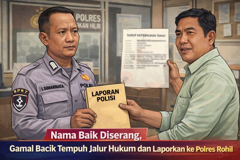 Baranewsriau.com, ROHIL | Merasa nama baiknya diserang melalui tudingan penguasaan lahan dan manipulasi dokumen, Penghulu Teluk Nilap, Kecamatan Kubu Babussalam, Gamal Bacik, resmi menempuh jalur hukum dengan melaporkan dugaan pencemaran nama baik dan fitnah ke Polres Rokan Hilir (Rohil), Senin (24/2/2026).