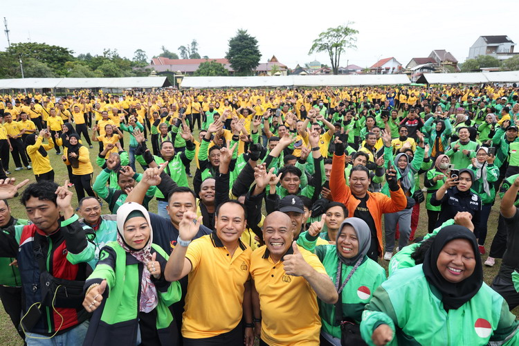 Pekanbaru,  – Kapolda Riau Irjen Pol Herry Heryawan bersama personel menggelar olahraga bersama ratusan ojek online (Ojol), Selasa, 9 September 2025, pagi.