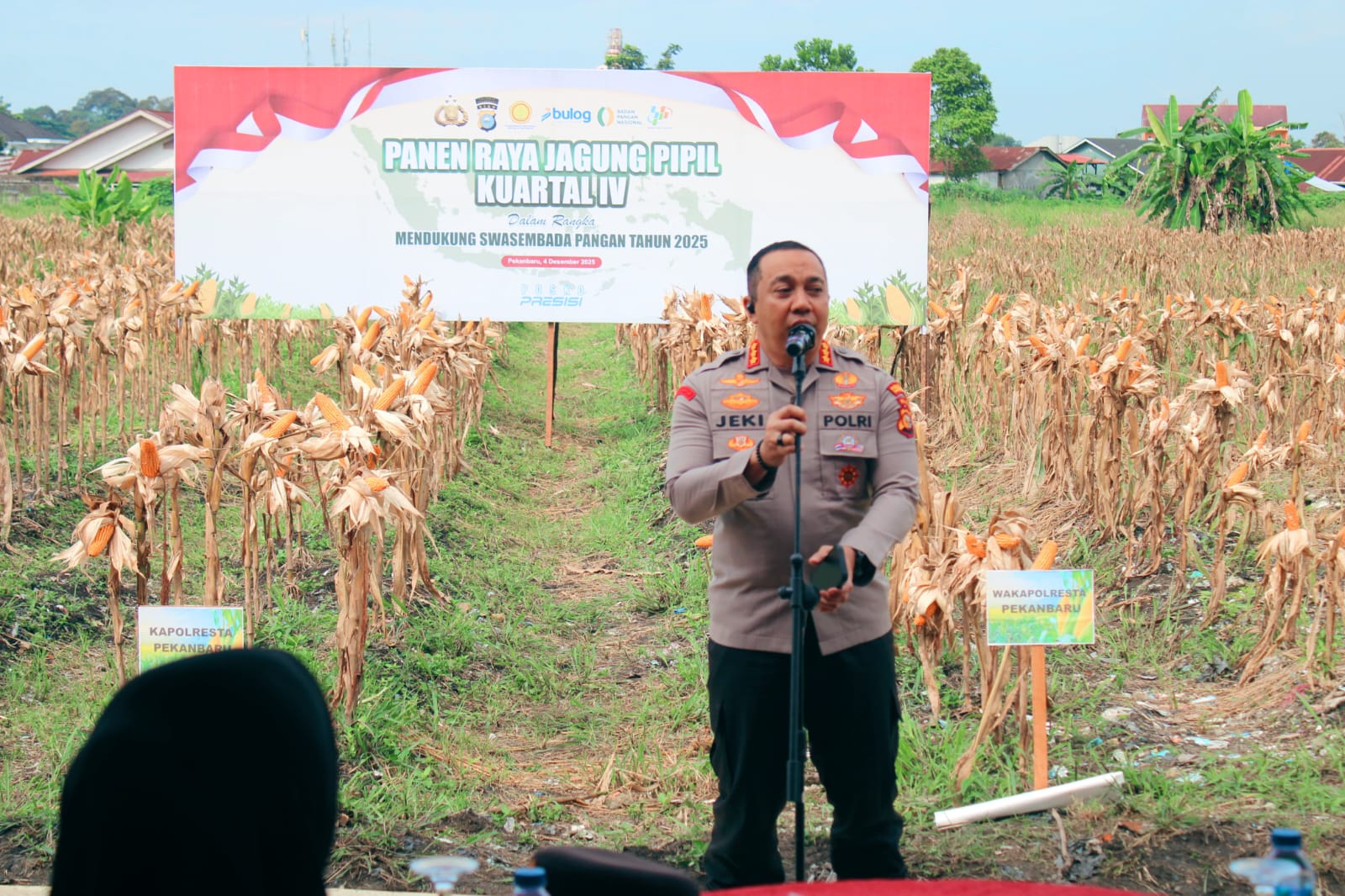 Pekanbaru, baranewsriau.com – Jajaran Polresta Pekanbaru kembali menunjukkan komitmen dalam mendukung program ketahanan pangan melalui pelaksanaan Panen Raya Jagung Pipil Kuartal IV Tahun 2025, bertempat di lahan pertanian binaan Poktan Sahabat Dapur Ummat, Kelurahan Sidomulyo Barat, Kecamatan Tuah Madani pada hari Kamis (4/12/2025).