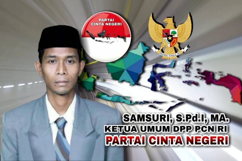 “Deklarasi Samsuri, S.Pd.I., M.A., Ketua Umum Partai Cinta Negeri, sebagai Calon Presiden Republik Indonesia Periode 2029–2034.”