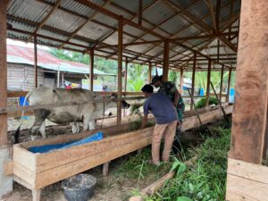 Peduli PMK, Personil Koramil 04/Kubu Dampingi Warga Cek Ternak