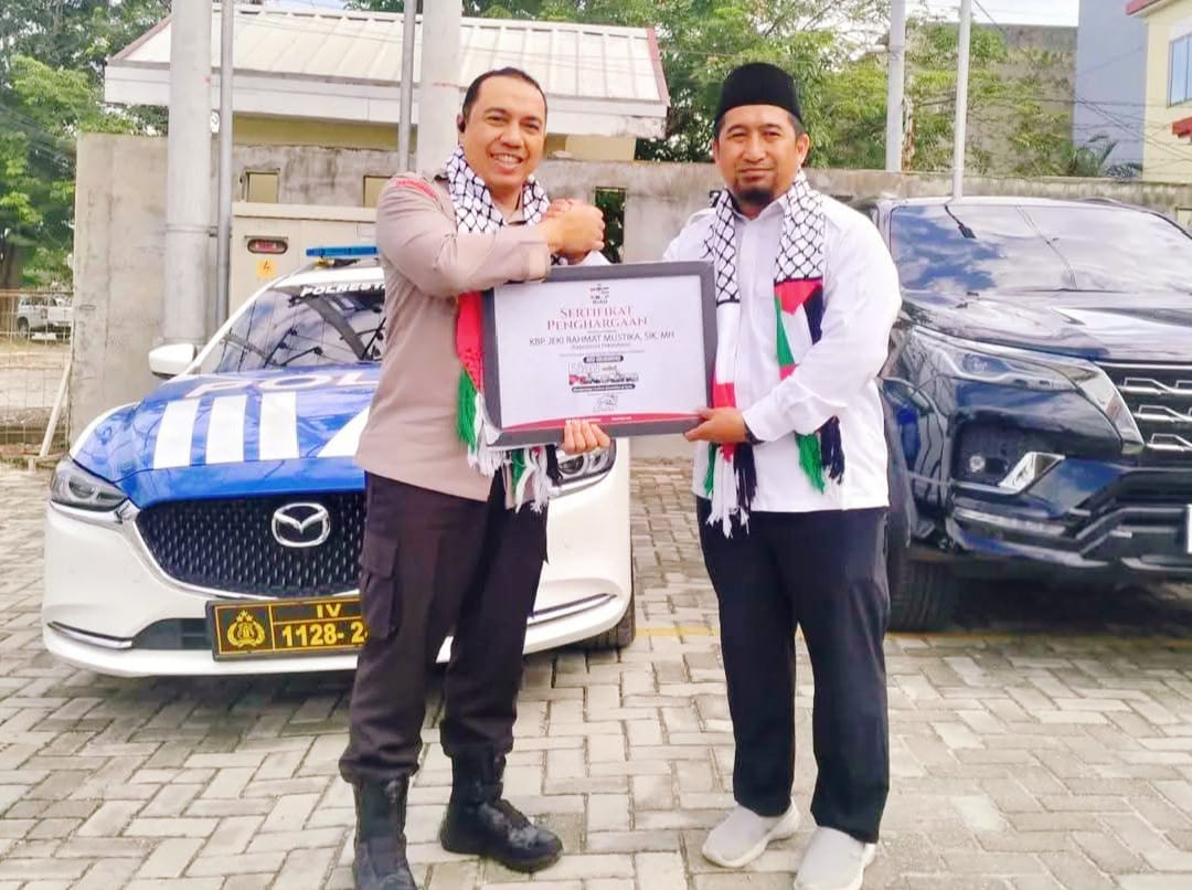 Kapolresta Pekanbaru menyampaikan terima kasih atas penghargaan yang diberikan dan menyatakan bahwa kepolisian akan terus mendukung kegiatan-kegiatan yang bertujuan untuk membantu rakyat Palestina.