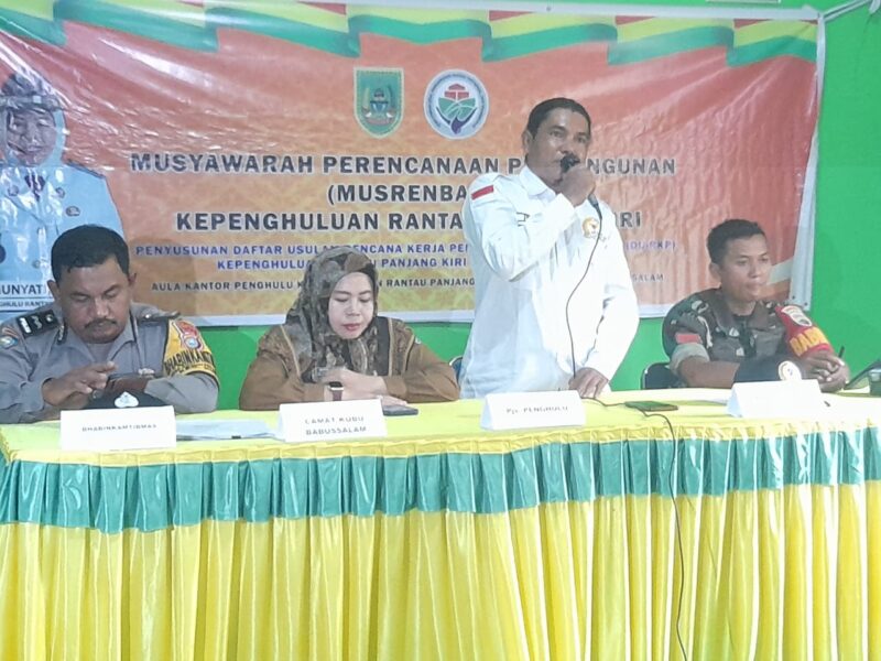 Pemerintah Kepenghuluan Rantau Panjang Kiri Kecamatan Kubu Babussalam Kabupaten Rokan Hilir menggelar Musyawarah Rencana Pembangunan (Musrenbang )Tahun 2024,Selasa (19/3-2024)