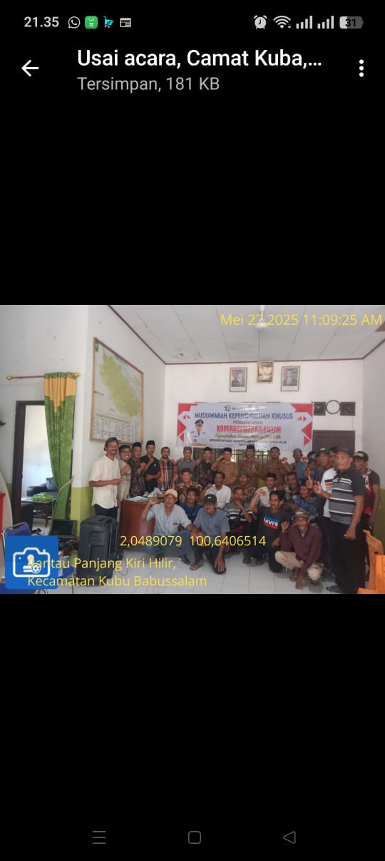 Kegiatan yang dipusatkan di kantor Penghulu Rantau Panjang Kiri Hilir itu turut dihadiri oleh Camat Kubu Babussalam Hasan Usman, S.Pd., M.M., pendamping desa, pendamping koperasi kecamatan, para kepala dusun, kepala urusan (kaur), staf penghulu, ketua RT dan RW, serta tokoh masyarakat, tokoh agama, tokoh wanita, tokoh pemuda, dan undangan lainnya.