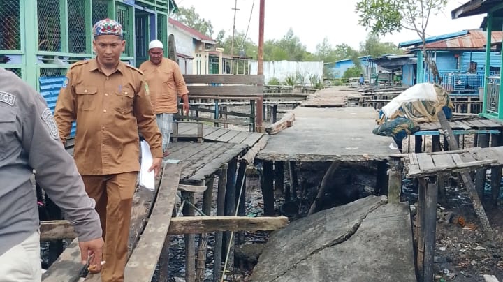 Penghulu Sofyar melakukan peninjauan kejalan runtuh tercatat terjadi di tiga titik lokasi, yakni Dusun 10, Dusun 13 dan di Dusun 2.