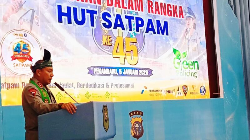 Pekanbaru,  baranewsriau.com – Kapolda Riau menghadiri syukuran Hari Ulang Tahun (HUT) ke-45 Satuan Pengamanan (Satpam) Indonesia di lantai 5 Kapolda Riau, Senin (5/1/2026).Peringatan HUT Satpam tahun ini mengangkat tema Satpam Bersatu, Berdaulat, Berdedikasi dan Profesional.