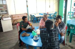 Rohil- baranews,— Personil Koramil 04/Kubu Kodim 0321 Rohil Serda Musriyanto yang bertugas di Posramil Panipahan melaksanakan kegiatan Komonikasi (Komsos) dengan beberapa Warga.