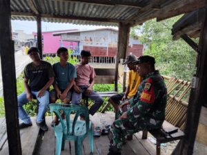 Rohil- baranews,— Personil Koramil 04/Kubu Kodim 0321 Rohil Serda Musriyanto yang bertugas di Posramil Panipahan melaksanakan kegiatan Komonikasi (Komsos) dengan beberapa Warga.