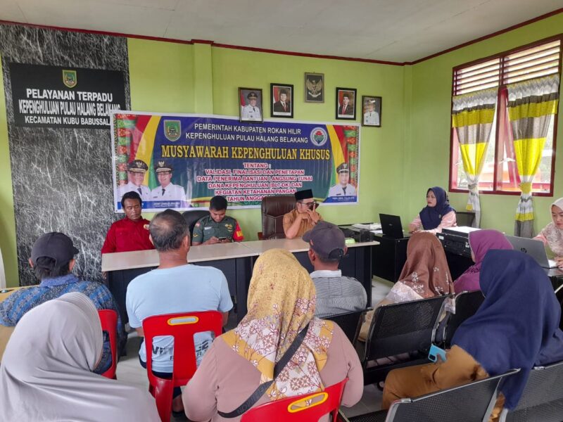 Pemerintah Kepenghuluan Pulau Halang Belakang Kecamatan Kubu Babussalam menggelar kegiatan Musyawarah khusus terkait tentang Validasi ,Finalisasi dan Penetapan data penerima bantuan langsung tunai dana Kepenghuluan (BLT-DK ) serta kegiatan ketahanan pangan tahun 2025.