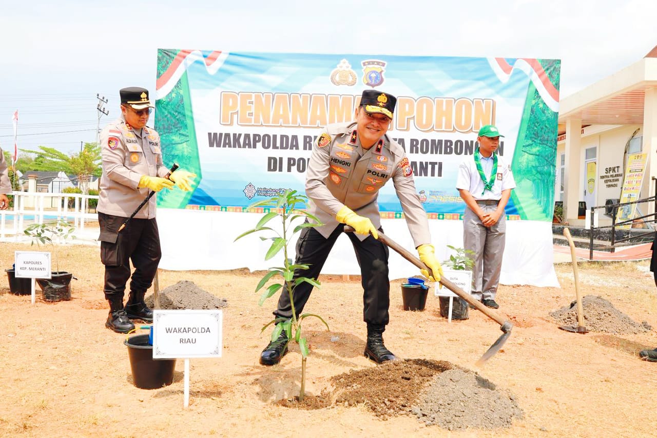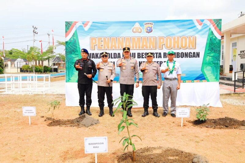 Kegiatan penanaman pohon tersebut dilakukan Wakapolda bersama sejumlah Pejabat Utama (PJU) Polda Riau, Kapolres Kepulauan Meranti AKBP Aldi Alfa Faroqi, serta jajaran PJU Polres Kepulauan Meranti.