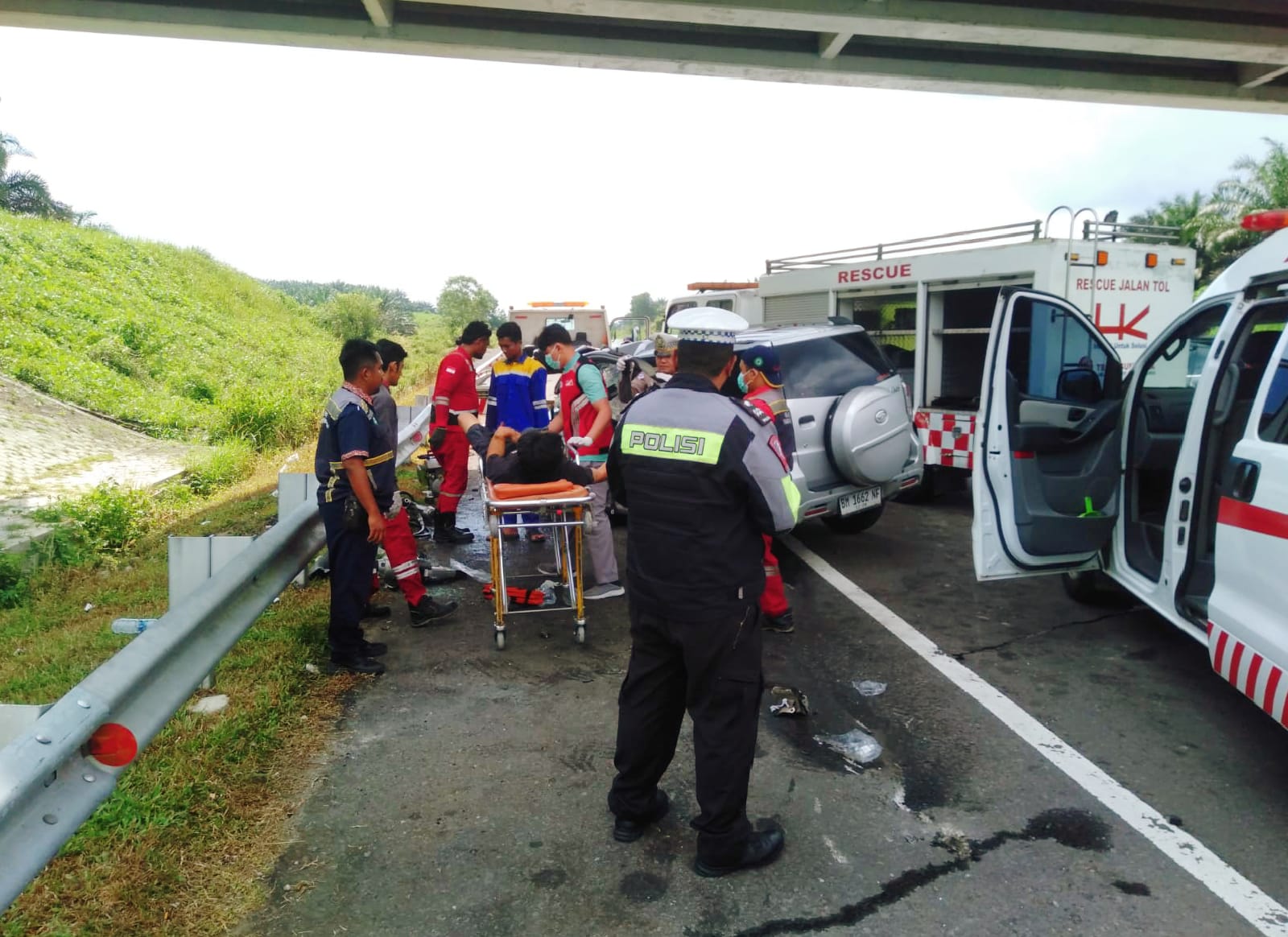 PJR Riau Grak Cepat Evakuasi Tiga Korban Amankan Jalan: Kecelakaan di Tol Permai KM 38 Satu Orang Meninggal