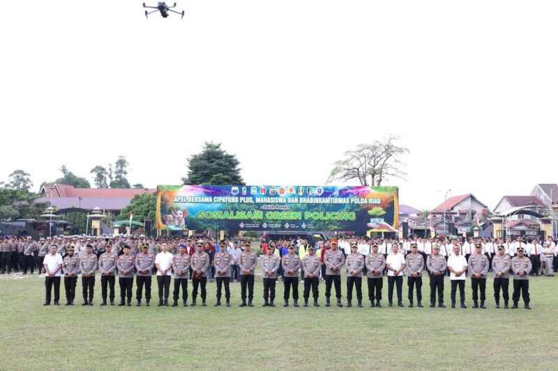 Pekanbaru | Polda Riau menggelar Apel Bersama yang melibatkan Mahasiswa dari Cipayung Plus, Bhabinkamtibmas, dan aktivis lingkungan dalam rangka sosialisasi Program Green Policing. Kegiatan ini berlangsung di halaman Mapolda Riau, Senin (4/8/2025), dan dipimpin langsung oleh Kapolda Riau, Irjen Pol Herry Heryawan.