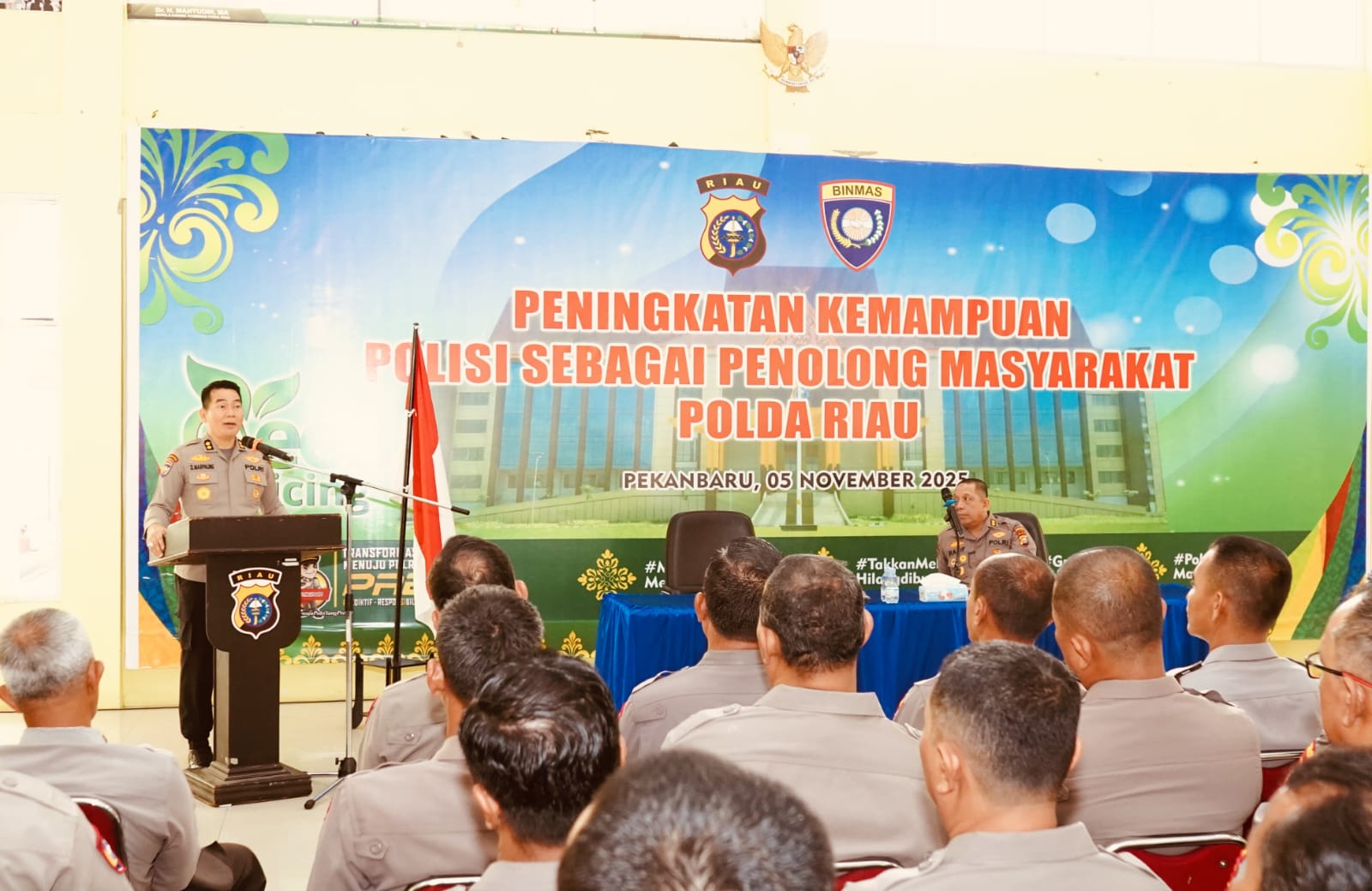 Pekanbaru, baranewsriau.comPolda Riau melalui Direktorat Pembinaan Masyarakat (Ditbinmas) menggelar kegiatan Peningkatan Kemampuan Polisi sebagai Penolong Masyarakat.  Rabu (5/11/2025).Kegiatan ini dipimpin langsung oleh Wadir Binmas Polda Riau, AKBP Dermawan Marpaung dan juga dihadiri oleh Kasubdit Bhabinkamtibmas AKBP Razif dan diikuti oleh para Kanit Binmas Polsek serta Bhabinkamtibmas dari seluruh jajaran Polres di wilayah hukum Polda Riau.