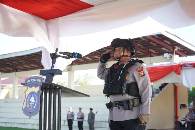 Upacara ini dipimpin langsung oleh Wakapolda Riau, Brigjen Pol Jossy Kusumo, S.H., M.Han., yang bertindak sebagai Inspektur Upacara.