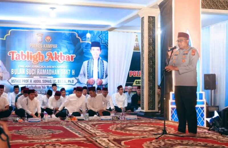 Kampar-Riau, baranewsriau.com – Menjelang bulan suci Ramadan, Polres Kampar menggelar tabligh akbar yang menghadirkan Ustaz Abdul Somad atau UAS di Kabupaten Kampar, Riau. Kapolda Riau Irjen Pol Herry Heryawan turut hadir dalam kegiatan tersebut. Kegiatan Tabligh Akbar Polres Kampar Dalam Rangka Menyambut Bulan Suci Ramadan 1447 H di Polres Kampar, Senin (16/2/2026) malam.