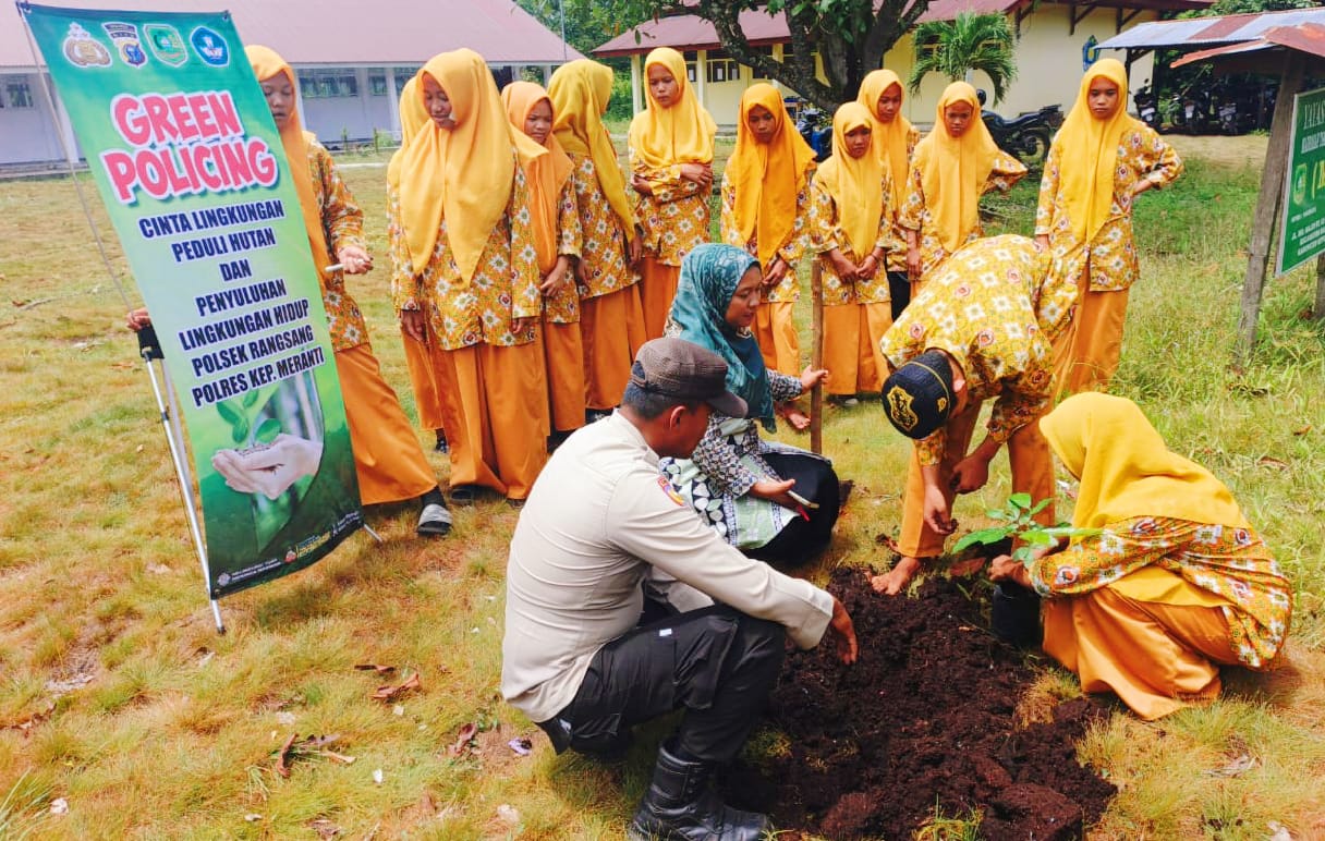 Polres Meranti Edukasi Anak PAUD dan Siswa MTs Tanam Pohon Lewat Program Green Policing