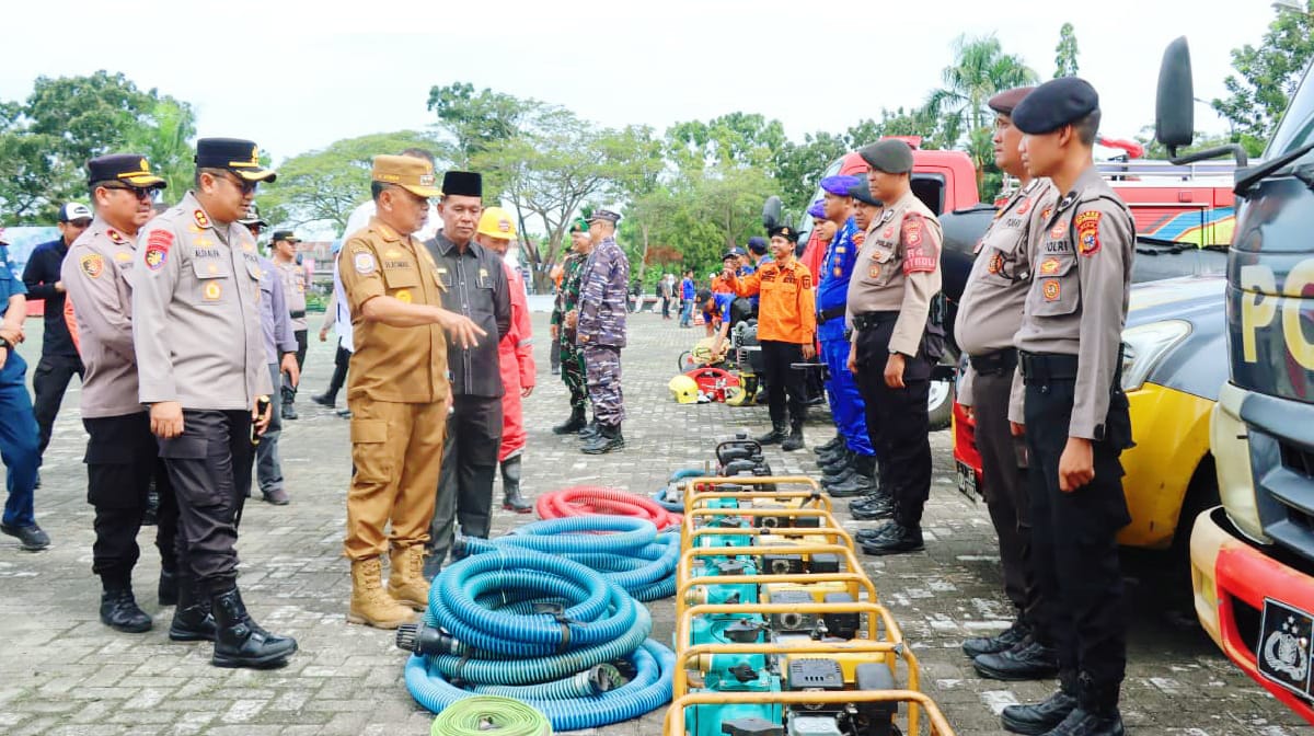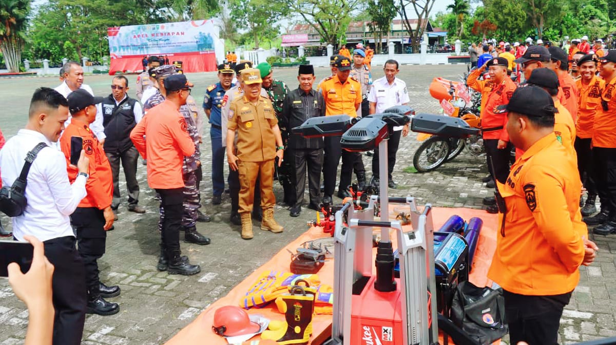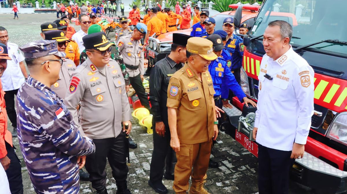 Saat apel, Bupati H. Asmar menyampaikan pentingnya sinergi antara pemerintah daerah, TNI, Polri, dan masyarakat dalam menghadapi potensi bencana