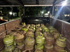 Ketiganya di duga melakukan penyululingan dari tabung gas tiga kilogram bersubsidi ke tabung gas dua belas kilogram Non Subsidi dengan barang bukti