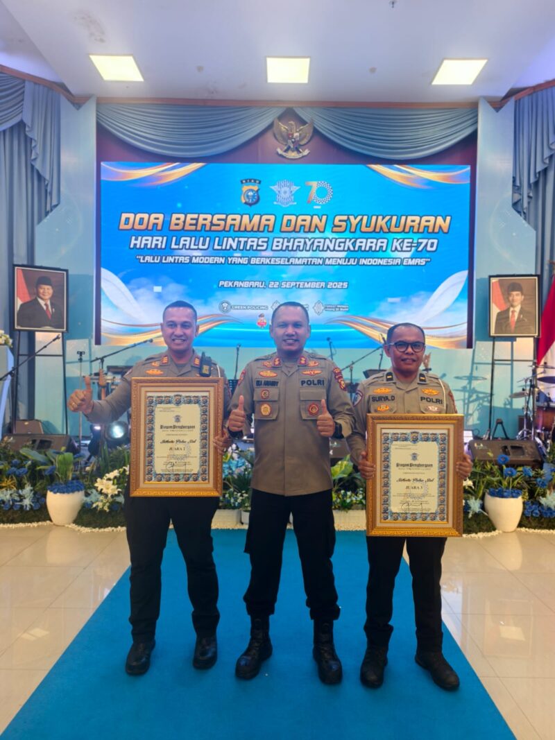 Penghargaan ini diserahkan langsung oleh Dirlantas Polda Riau Kombes Pol. Taufiq Lukman Nurhidayat, S.I.K., M.H., pada acara puncak peringatan HUT yang berlangsung di Pekanbaru.