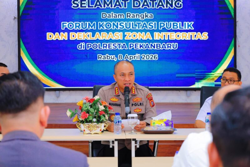 Pekanbaru, baranewsriau.com – Polresta Pekanbaru menggelar Forum Konsultasi Publik Tahun 2026 yang dirangkaikan dengan Deklarasi Zona Integritas menuju Wilayah Birokrasi Bersih dan Melayani (WBBM), bertempat di Aula Zapin Polresta Pekanbaru, Rabu (8/4/2026).