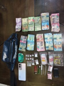 Sebanyak 4 paket plastik bening list merah berisi sabu ukuran sedang, serta 1 paket besar berisi 8 paket kecil lainnya. Selain itu, polisi juga menemukan 100 plastik klip kosong yang siap digunakan untuk pengemasan, 2 buah sekop pipet, 1 unit bong, serta uang tunai sebesar Rp 7.070.000 dan Polisi berhasil mengamankan tiga orang pelaku dengan inisial MHW, SH dan PW