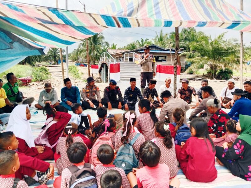 Dalam sambutannya, Kapolsek Sinaboi menyampaikan apresiasi dan ucapan terima kasih kepada seluruh personel BKO Brimob dan BKO Polda Riau atas sinergi dan kerja keras dalam pembangunan Jembatan Merah Putih Presisi di Kampung Aman.