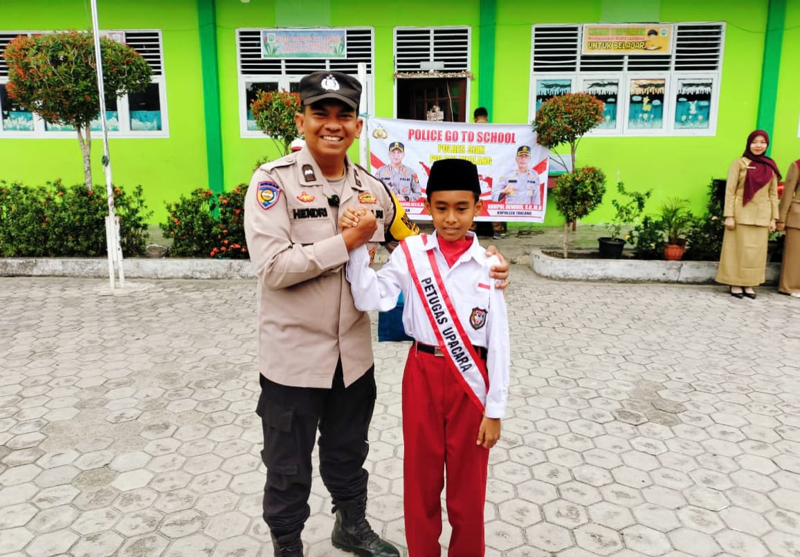 “Anak-anak adalah generasi penerus bangsa. Jadilah pelajar yang berprestasi, disiplin, dan saling menghargai agar cita-cita kalian tercapai,” pesan Aipda Hendri di hadapan para siswa.