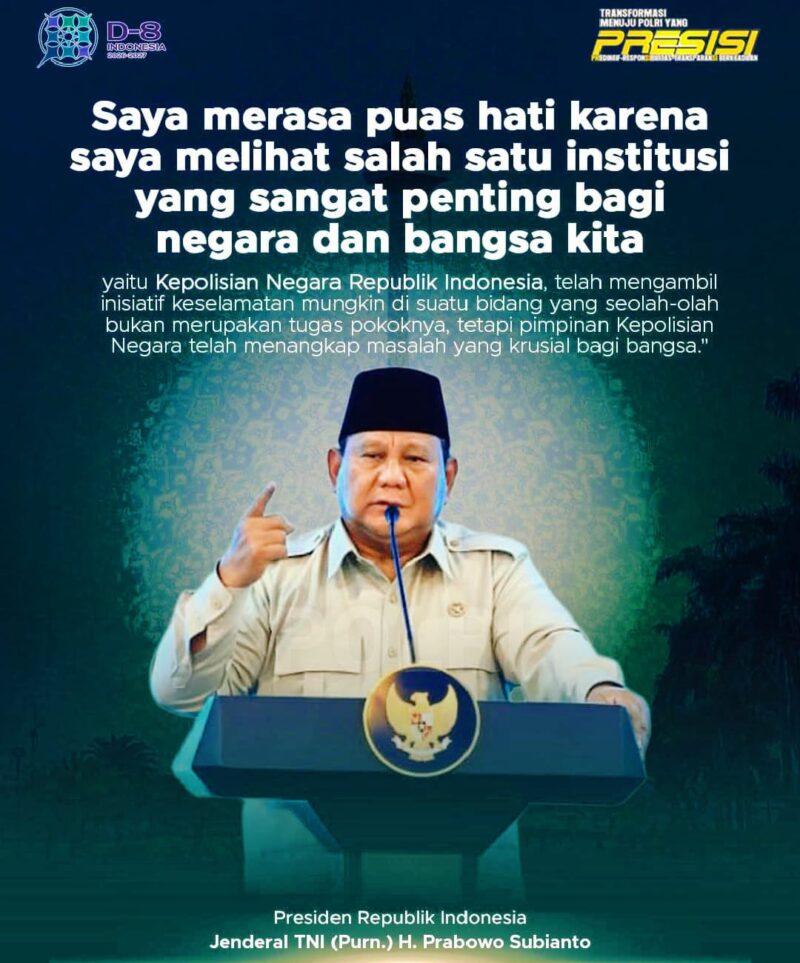 Apresiasi Presiden Prabowo kepada Polri ini menunjukkan komitmen pemerintah dalam mewujudkan program unggulan dan meningkatkan kerja sama dengan institusi negara untuk mencapai tujuan bersama.
