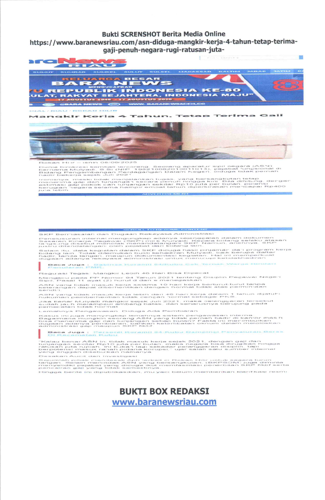 1.Pada hari Senin 8 September media online (Siber)www.baranewsriau.com yang bapak pimpin telah menyajikan berita dengan judul:“ASN Diduga Mangkir Kerja 4 Tahun,