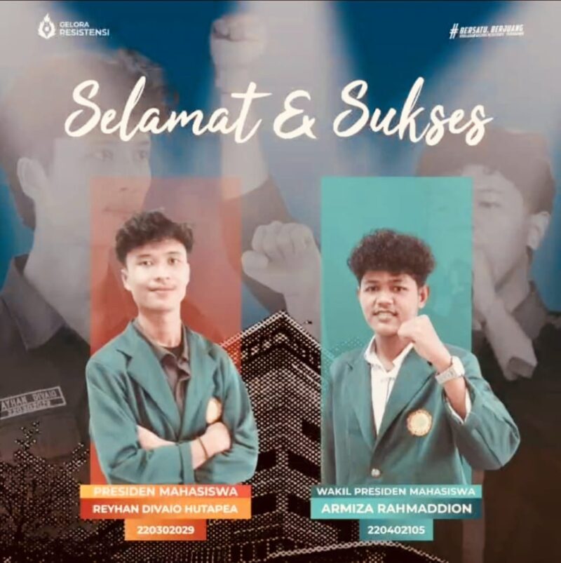 Pasangan Presma dan Wapresma Urut 1 ini telah meraih suara 2.113 dan secara sah mengalahkan para pesaingnya, yakni Rizki Ahmad Fauzi – Faturrahman Nobel dengan skor 1.747 Suara. Dari Total Suara 3.860 Pemilih.