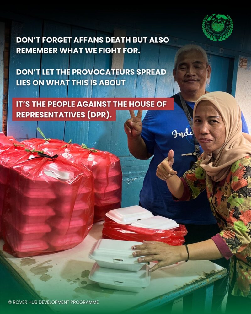 Jakarta — Di tengah demonstrasi yang terus berlangsung di Jakarta, The Rover Hub Development Program (RHDP) menyatakan solidaritas penuh kepada rakyat Indonesia yang menuntut keadilan, kesetaraan, dan akuntabilitas dari para pemimpinnya.
