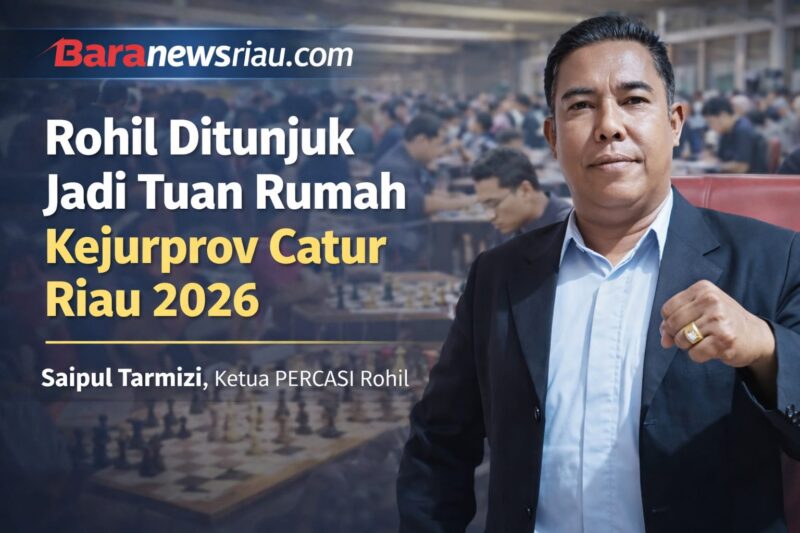 BARANEWSRIAU.com, ROHIL | Kabupaten Rokan Hilir (Rohil) resmi ditunjuk sebagai tuan rumah Kejuaraan Provinsi (Kejurprov) Catur Riau ke-37 Tahun 2026. Penunjukan tersebut dituangkan dalam surat resmi Pengurus Provinsi (Pengprov) Persatuan Catur Seluruh Indonesia (PERCASI) Riau.