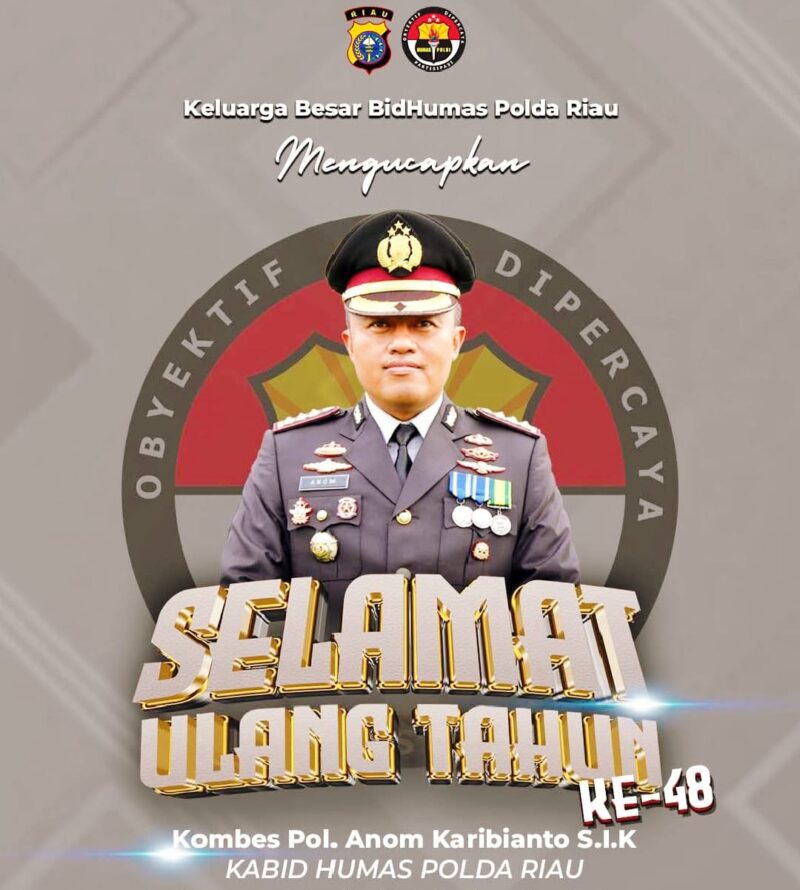 Pekanbaru, keluarga besar Media online “baranewsriau.com” mengucapkan selamat ulang tahun ke-48  kepada Bapak Kombes Pol Anom Karibianto, S.I.K., Kabid Humas Polda Riau yang inspiratif! Jumat (7/11/2025).
