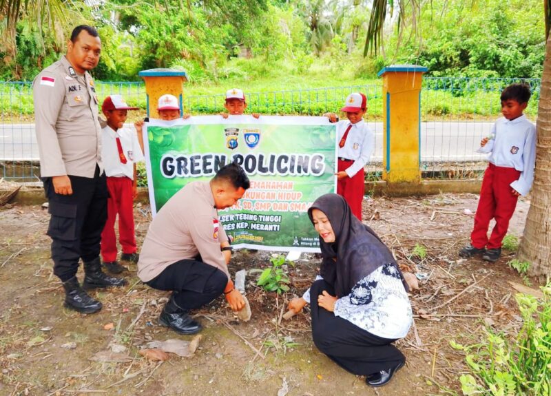 “Kami Melakukan kegiatan interaktif dengan tema peduli lingkungan, melakukan penanaman bibit pohon Mangga di lingkungan SD Negeri 24 Selatpanjang Konsep Green Policing sebagai pendekatan strategis dan humanis dalam menjaga ketertiban sosial dan keberlanjutan lingkungan hidup,” ujar Bhabinkamtibmas Selatpanjang Selatan Polsek Tebing Tinggi Aipda Solehudin.