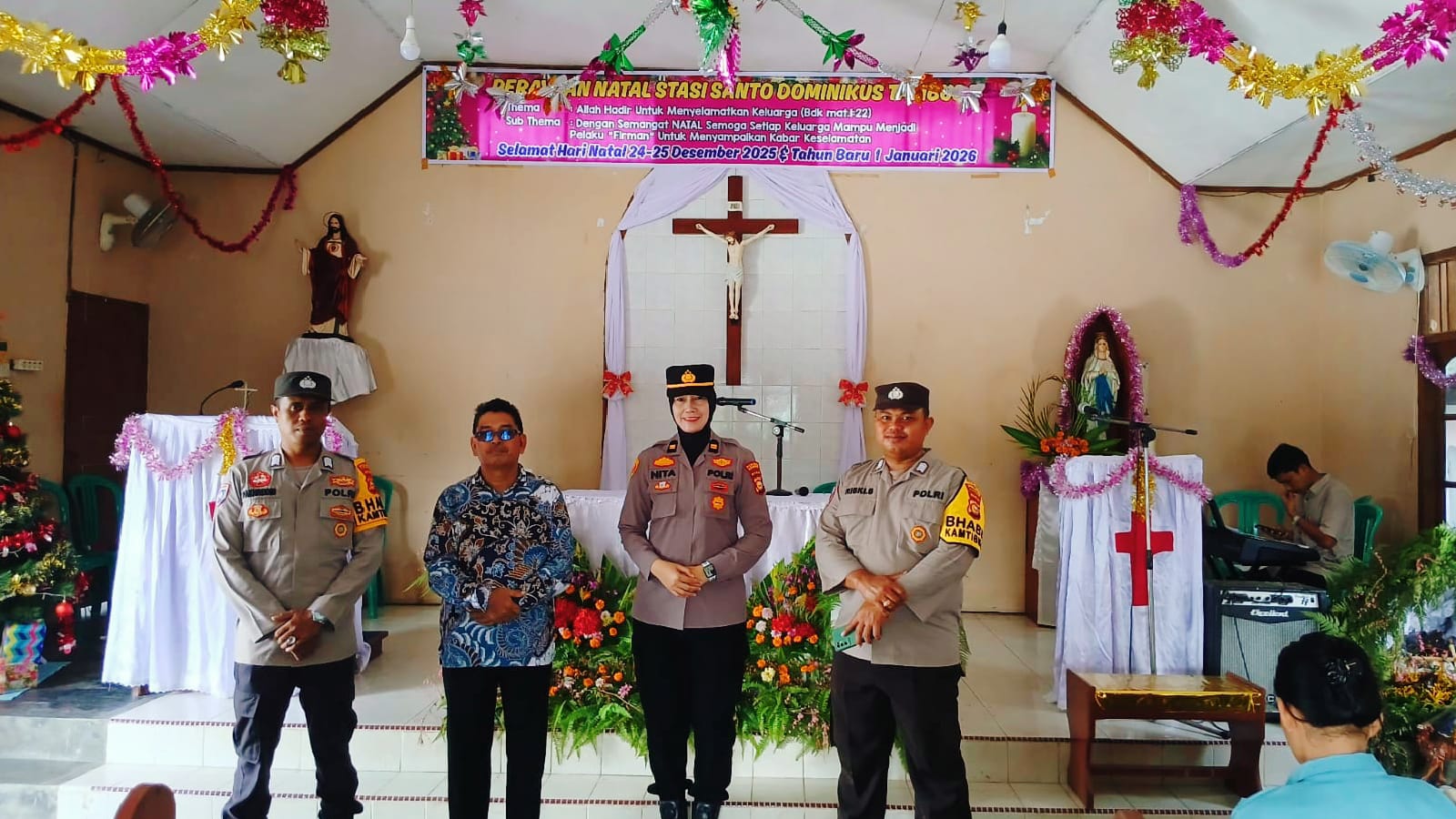 “Kami hadir di sini untuk memastikan bahwa umat Kristiani dapat melaksanakan ibadah Natal dengan tenang dan nyaman. Kami juga ingin memastikan bahwa personel pengamanan telah siap siaga dalam mengantisipasi segala kemungkinan gangguan Kamtibmas,” ujar IPTU Rekmisnita selaku Pamatwil Wilayah Polsek Kampar.