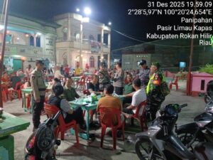 Rohil-baranews.Com,—– Mengantisipasi gangguan Kamtibmas Saat perayaan malam tahun baru ,Personil TNI dari Koramil 04/Kubu bersama Personil Polsek Panipahan dipimpin Pelda Toni Irawan melakukan kegiatan pengamanan.